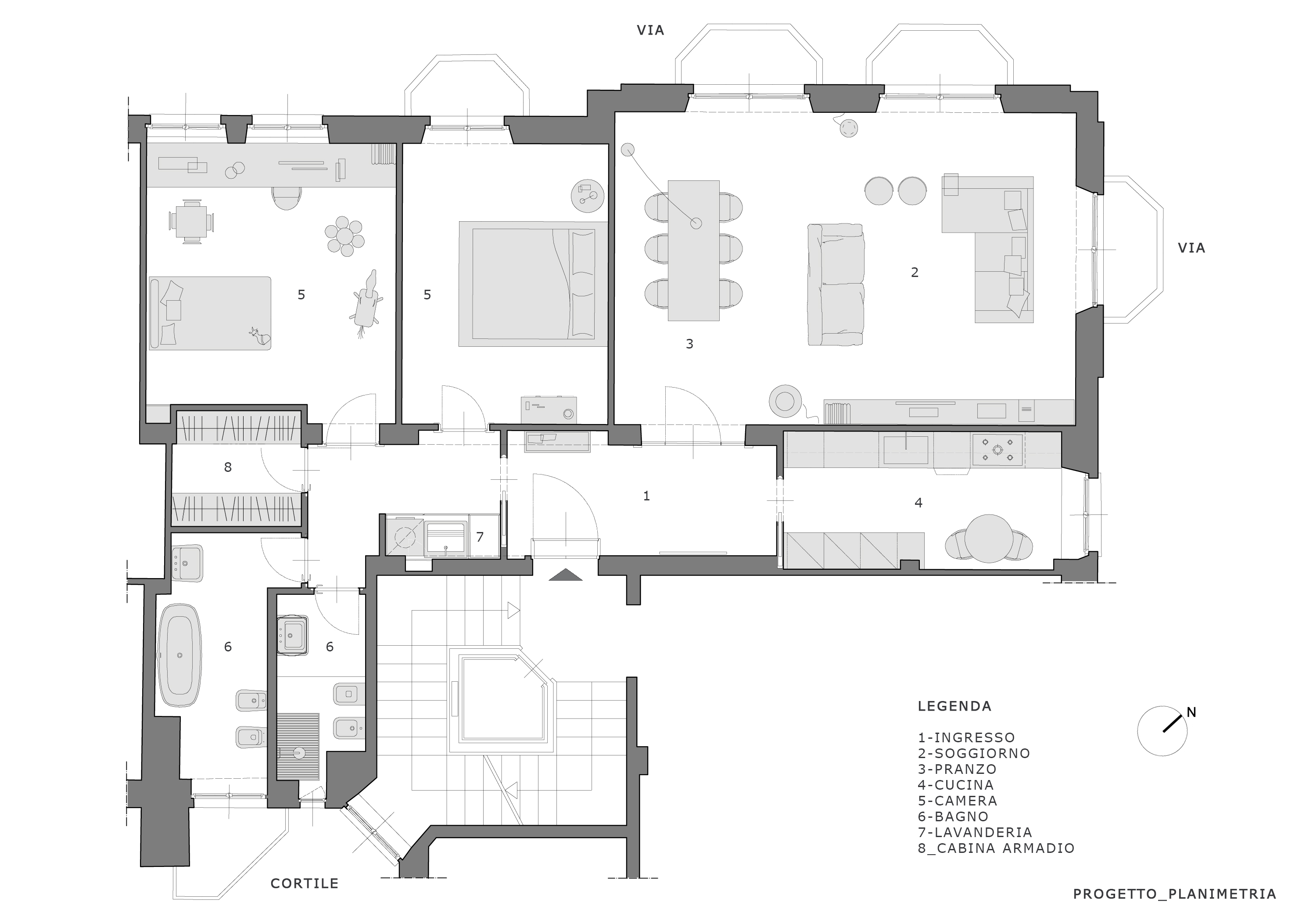 I proprietari inizialmente faticano a riconoscerne il potenziale, probabilmente per lo schema distributivo con il quale si presentava inizialmente. C’era il desiderio di superare il retaggio del vecchio schema distributivo della casa con lungo corridoio di accesso alle camere, non grandi e inizialmente ingombre di mobilio, per dare agli spazi più ariosità e ordine visivo.