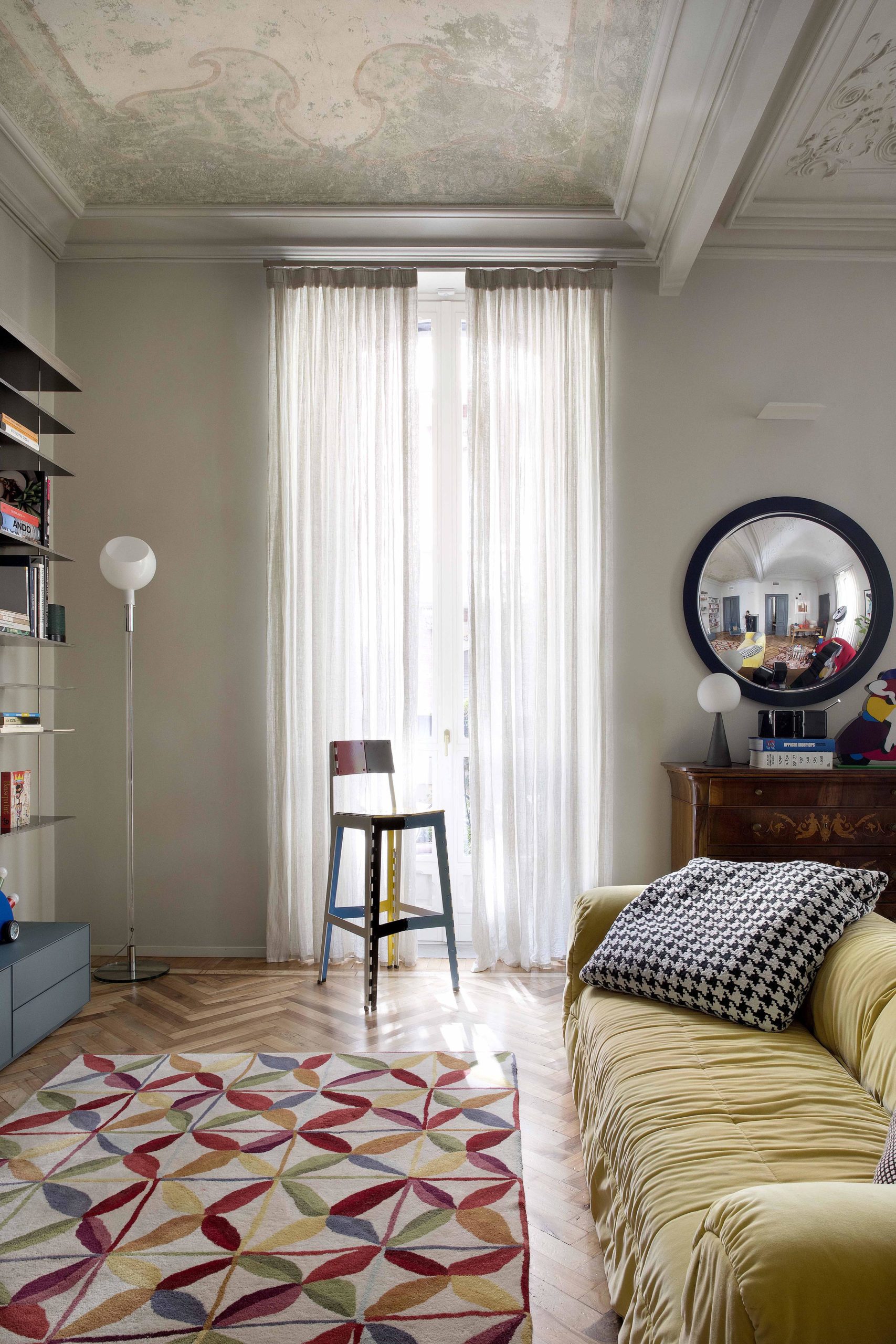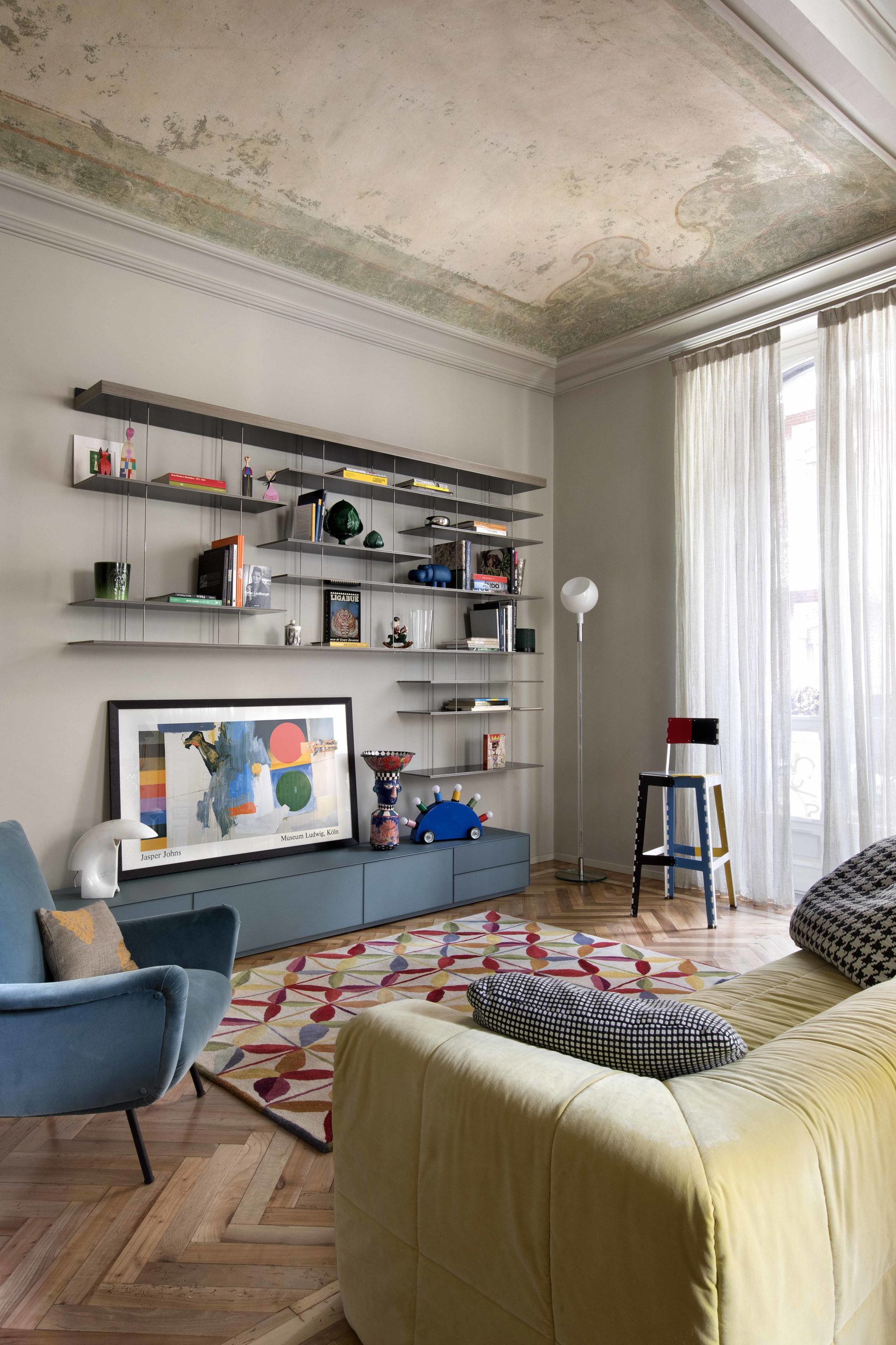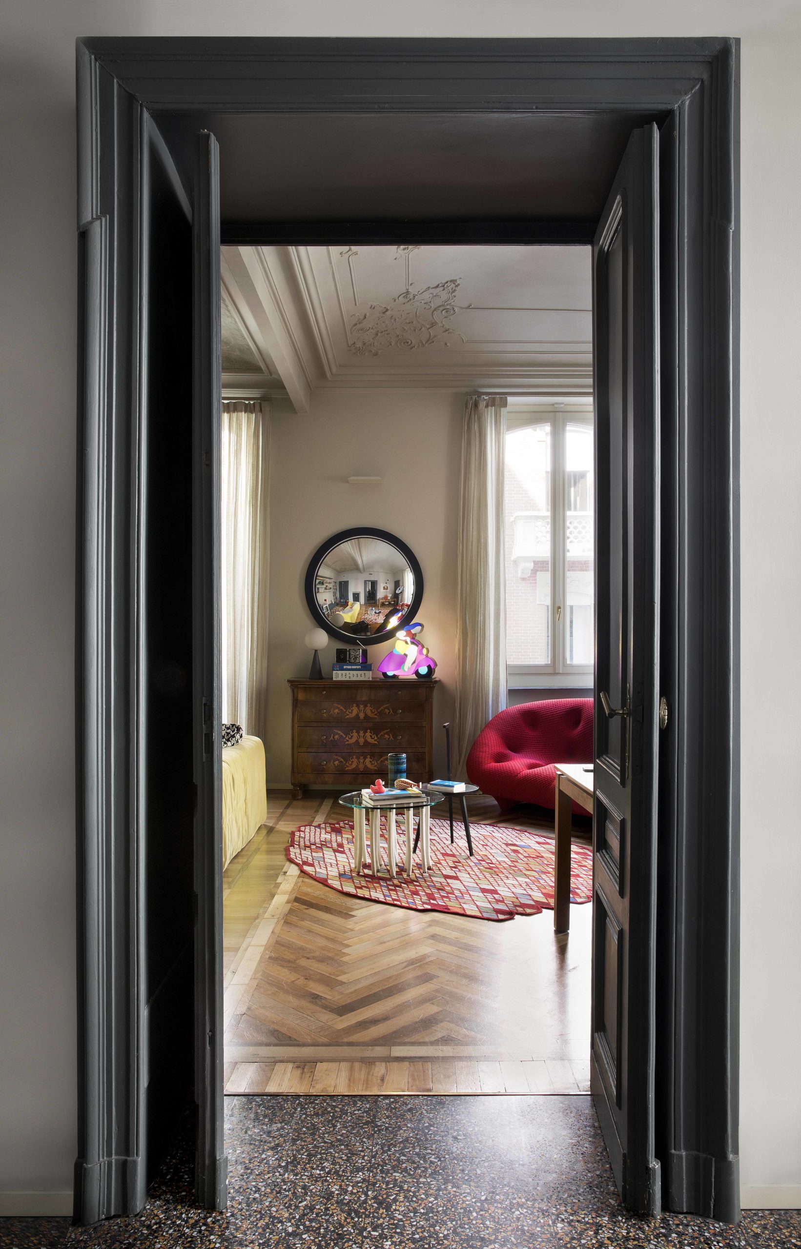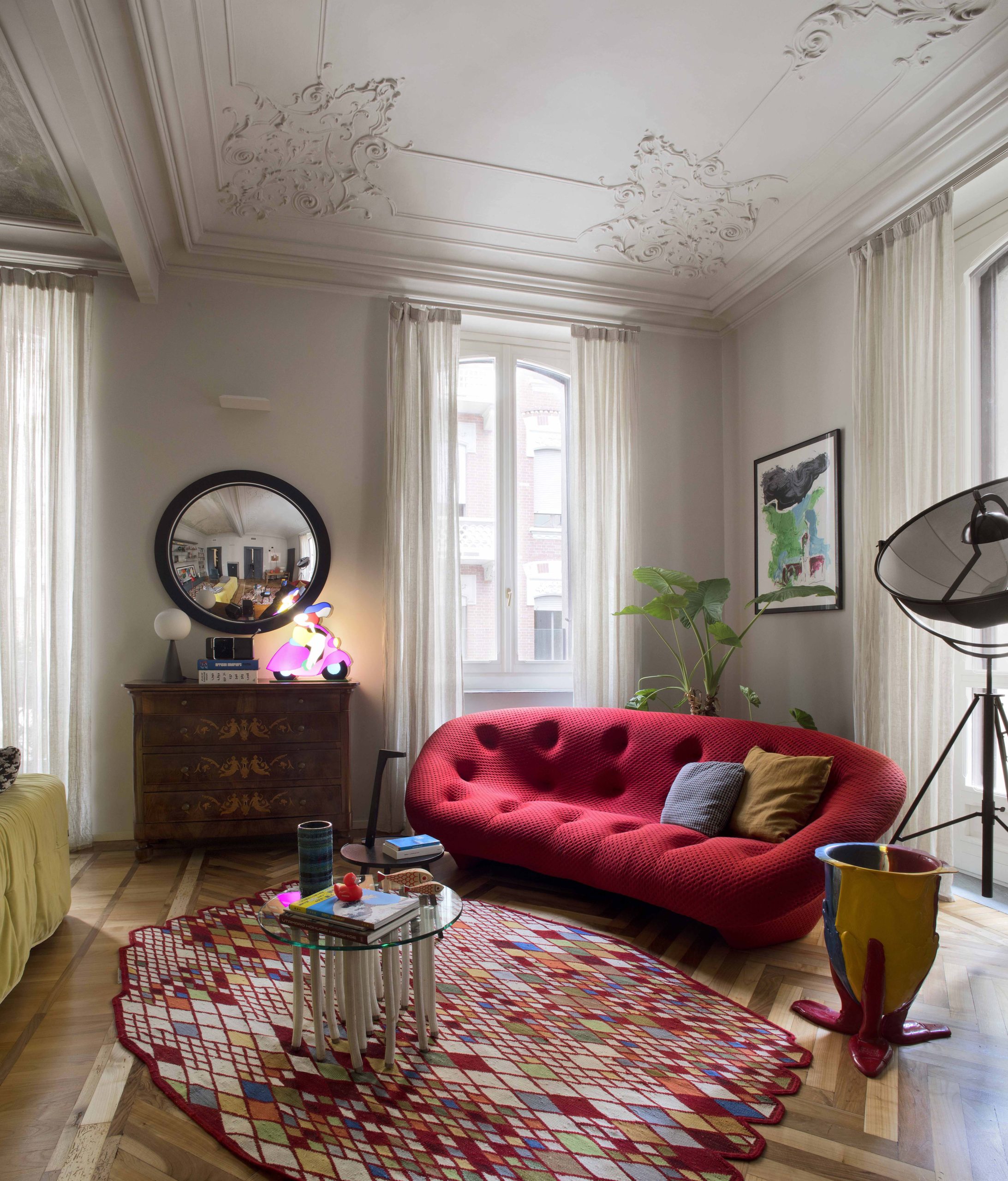 In questo ambito signorile dei primi del ‘900 si inserisce questo grande appartamento, di cui si invaghiscono i due proprietari, una coppia giovane con due bambini trasferiti da Milano, che hanno un gusto eclettico, e sono degli appassionati collezionisti di pezzi di design d’autore.