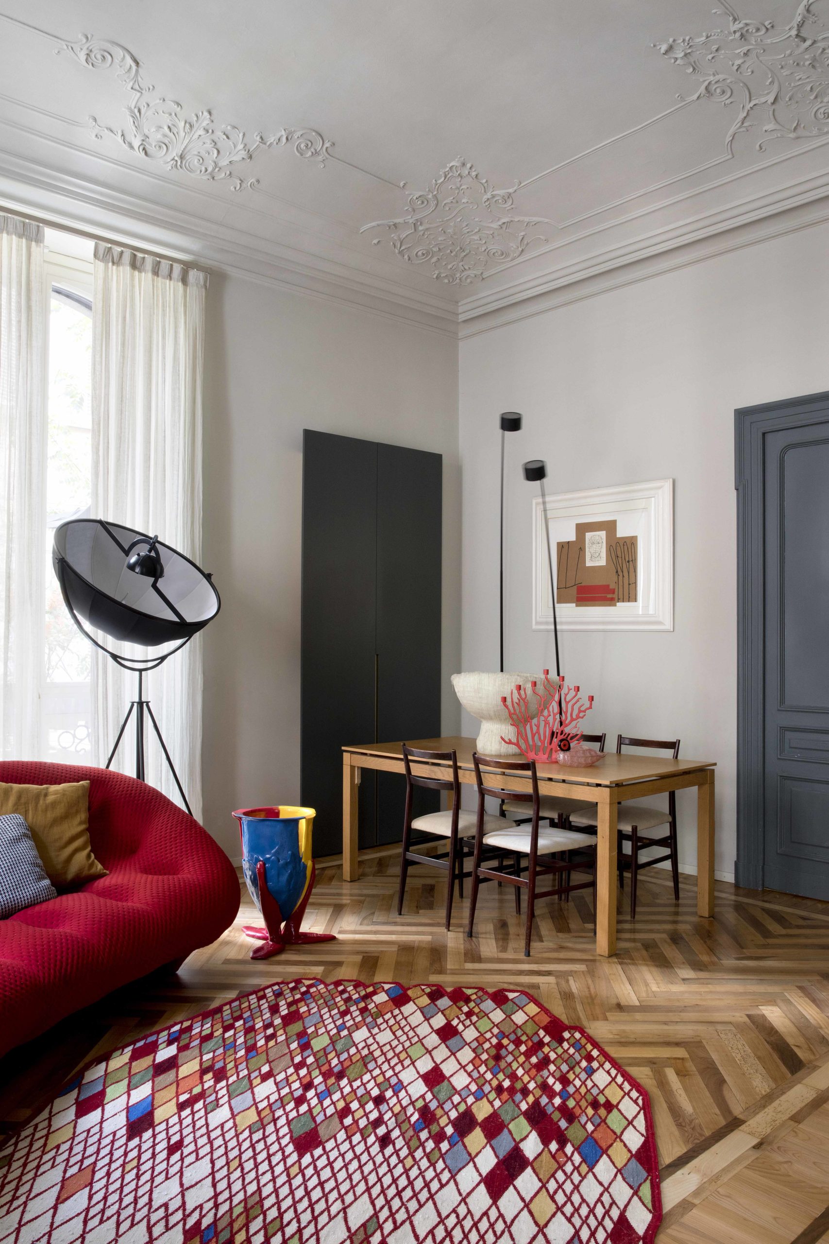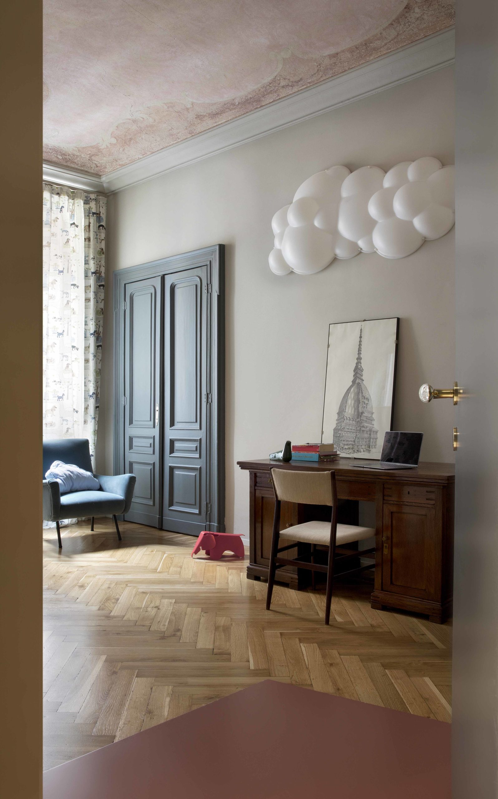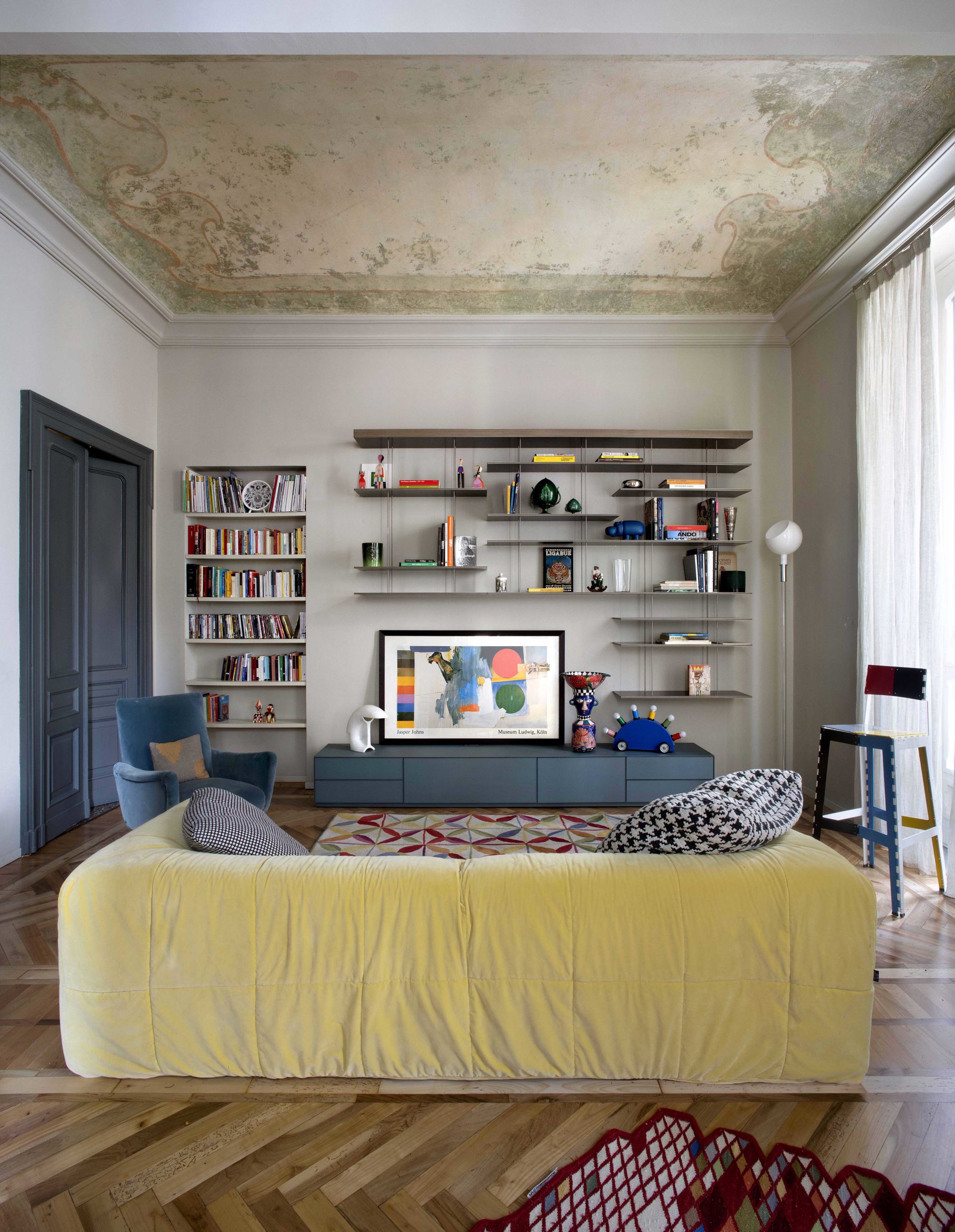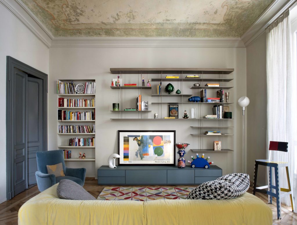 In questo ambito signorile dei primi del ‘900 si inserisce questo grande appartamento, di cui si invaghiscono i due proprietari, una coppia giovane con due bambini trasferiti da Milano, che hanno un gusto eclettico, e sono degli appassionati collezionisti di pezzi di design d’autore.