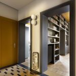 La volontà dei clienti è stata, sin dalle prime fasi, quella di mantenere il più possibile lo schema originario dell’immobile cercando principalmente di preservare il pavimento in graniglia originario dell’ingresso nei toni del giallo/ocra – nero/antracite, che li aveva colpiti al momento dell’acquisto dell’alloggio, e di mantenere i pavimenti in legno originari (legno rovere sui due ambienti su via (nuova cucina e soggiorno) e castagno e ciliegio nel nuovo studio). Le esigenze principali erano quelle di ottenere una zona giorno più grande, una camera e uno studio.