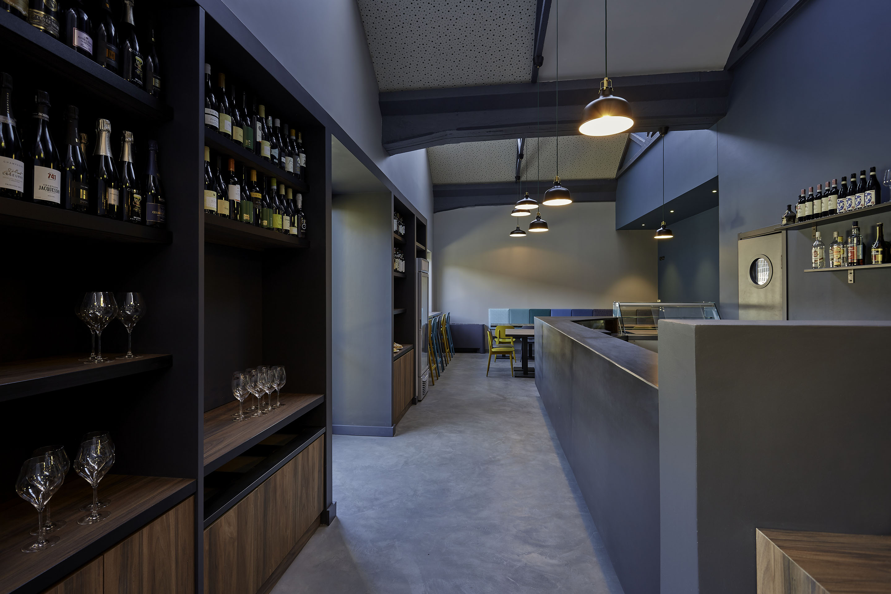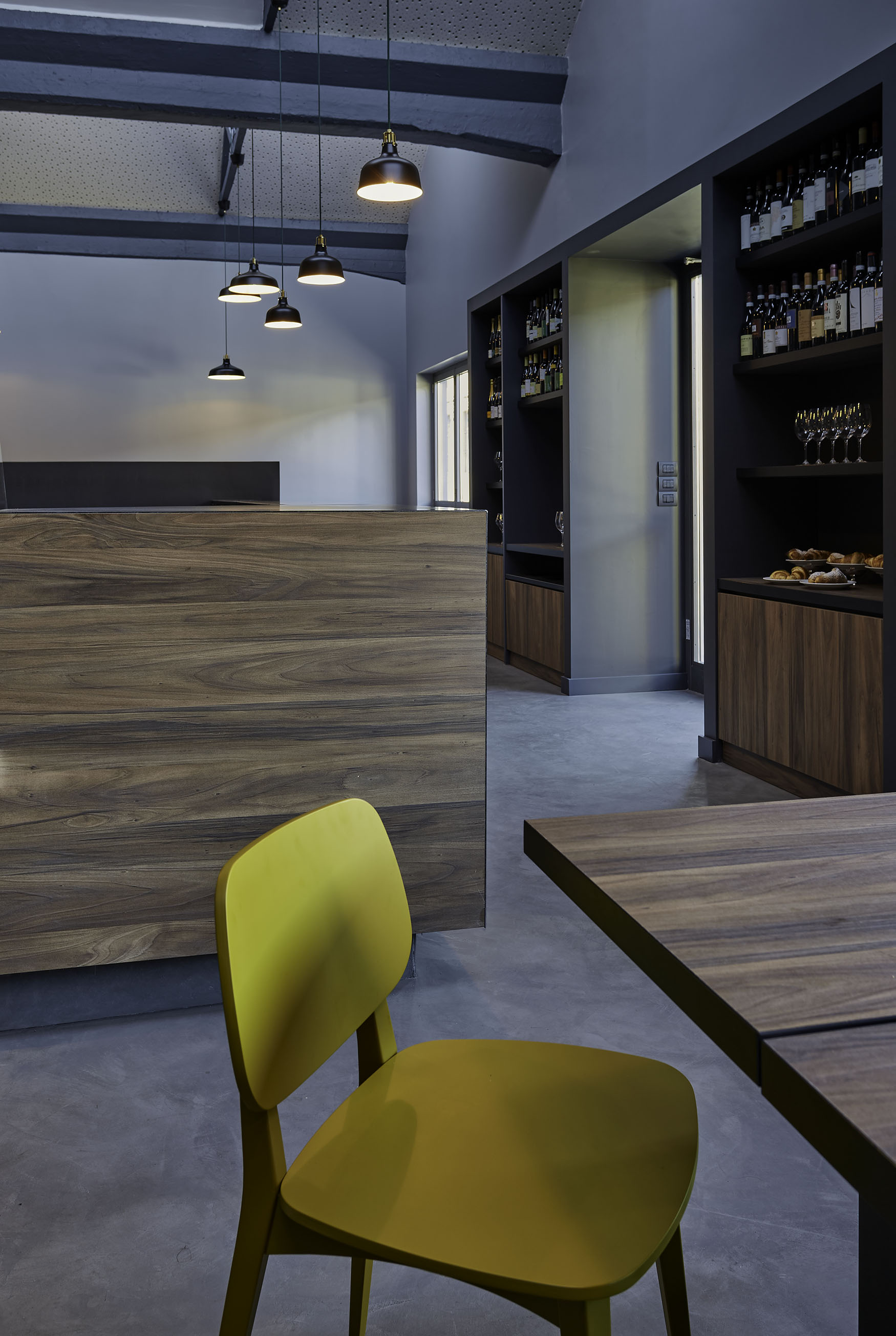 In quest’ottica, seppur in chiave contemporanea, è stato sviluppato per questo bar, creato negli anni ’80, un restyling in cui emergesse lo spirito industriale dei luoghi.
