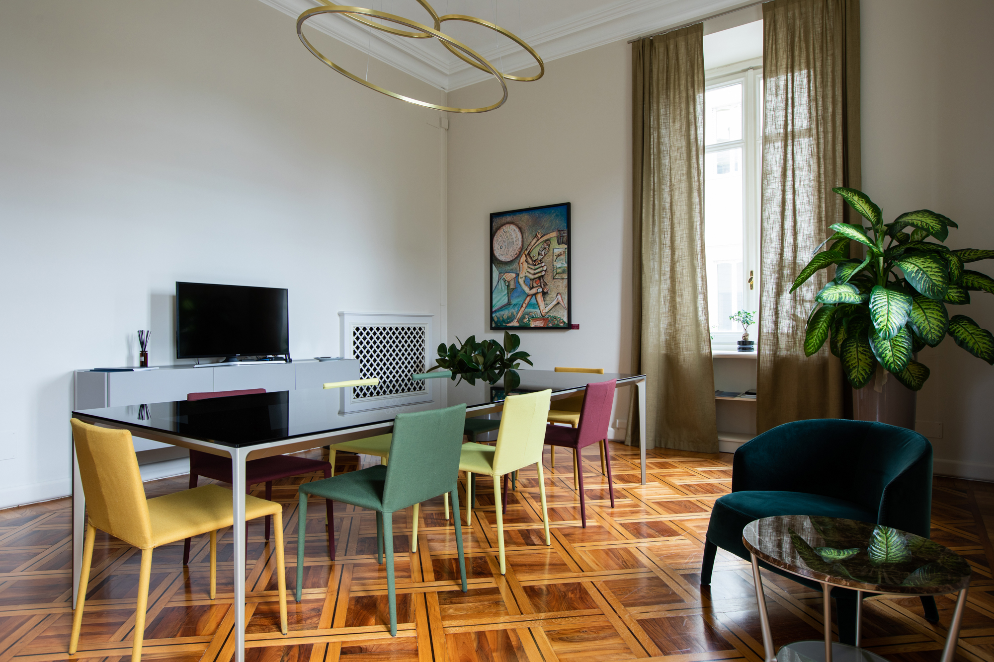 L’ intervento è stato caratterizzato dal restyling degli spazi per i quali gli arredi di serie, il disegno e la realizzazione di arredi su misura, delle illuminazioni nonché dei tendaggi e delle opere d’arte, sono stati accuratamente selezionati per rispondere alle specifiche esigenze d’uso e di aspettativa dei clienti.
