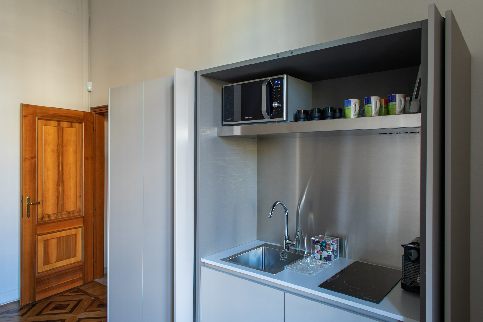 Il nuovo studio si colloca al primo piano di questa suggestiva palazzina di rappresentanza in piena zona Crocetta.